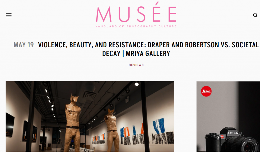 “In Violence, Beauty, and Resistance: Draper and Robertson vs. Societal Decay, artists Kevin Draper and Lora Robertson deliver an urgent and visceral dialogue on the cultural ruptures and systemic failures that define our time. On view at Mriya Gallery in Tribeca, this ambitious joint exhibition—presented by Satellite Collective—confronts the aestheticization of violence and the necessity of resistance with a striking blend of sculpture, photography, and conceptual rigor.”